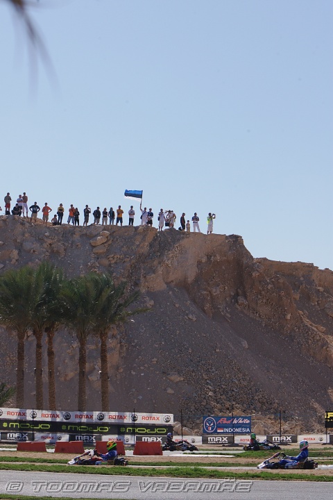 Estonian fans with flag on top of the cliff, pre-final, Rotax Max Challenge World Finals 2009, Sharm el-Sheikh, Egypt, 12.12.2009 11:20.11