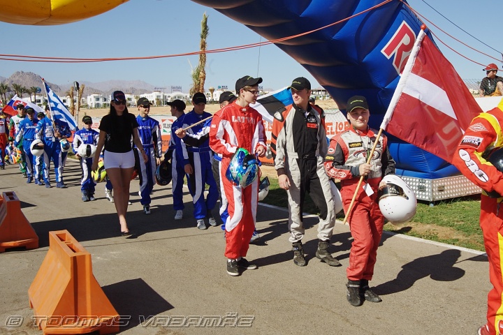 Team Lithuania, Jurijus Stepeninas, Tomas Jurevièius, grid-girl, Matas Kiznis, Kevin Gracholskis, opening ceremony, Rotax Max Challenge World Finals 2009, Sharm el-Sheikh, Egypt, 12.12.2009 12:08.03