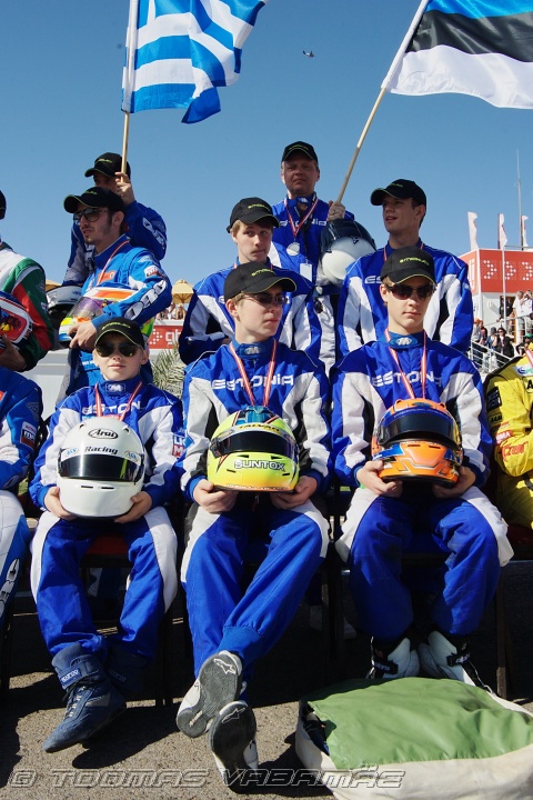 Team Estonia, from left, front row Martin Rump, Aavo Talvar, Tristan Viidas, second row Mario Haugas, Mario Vendla, back row Meelis Laido, opening ceremony, Rotax Max Challenge World Finals 2009, Sharm el-Sheikh, Egypt, 12.12.2009 12:31.31