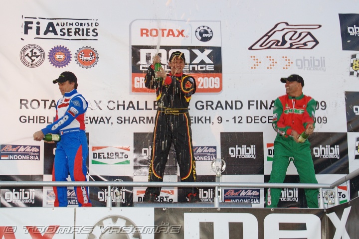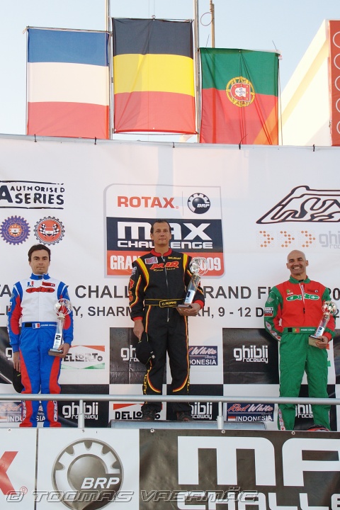 Jerome Bourquard (l), Christophe Adams (m), Pedro Loures (r), Rotax Max Senior Masters, prizegiving, Rotax Max Challenge World Finals 2009, Sharm el-Sheikh, Egypt, 12.12.2009 16:35.07