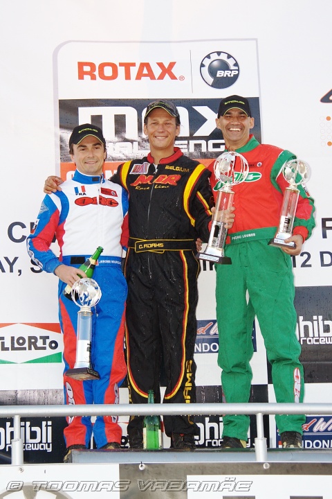 Jerome Bourquard (l), Christophe Adams (m), Pedro Loures (r), Rotax Max Senior Masters, prizegiving, Rotax Max Challenge World Finals 2009, Sharm el-Sheikh, Egypt, 12.12.2009 16:36.03