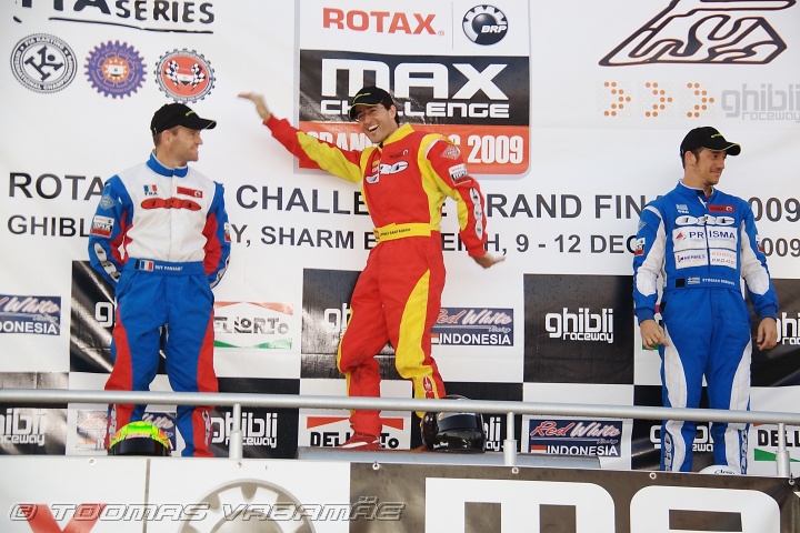 Guy Pansart (l), Jesus Santander (m), Stogian Gosevits (r), Rotax Max DD2 Masters, prizegiving, Rotax Max Challenge World Finals 2009, Sharm el-Sheikh, Egypt, 12.12.2009 16:44.12