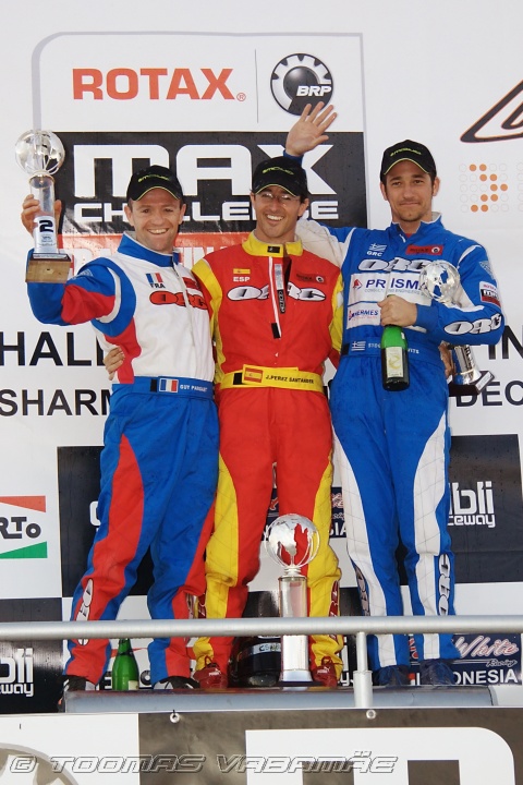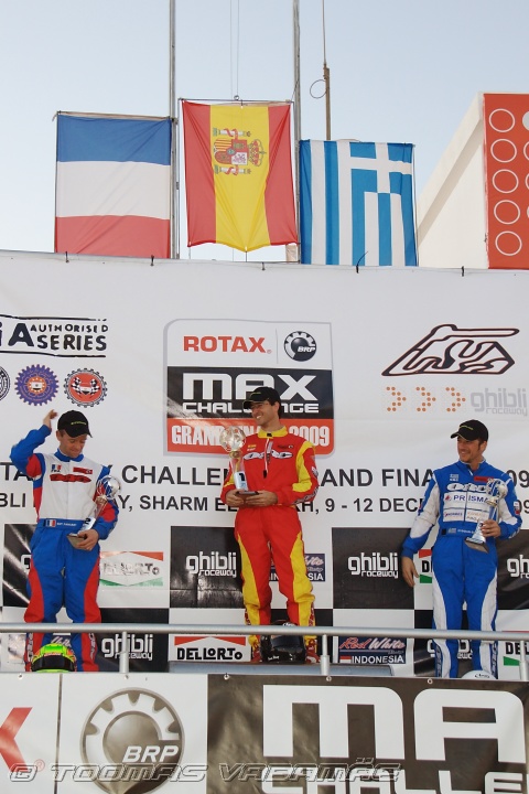 Guy Pansart (l), Jesus Santander (m), Stogian Gosevits (r), Rotax Max DD2 Masters, prizegiving, Rotax Max Challenge World Finals 2009, Sharm el-Sheikh, Egypt, 12.12.2009 16:45.05