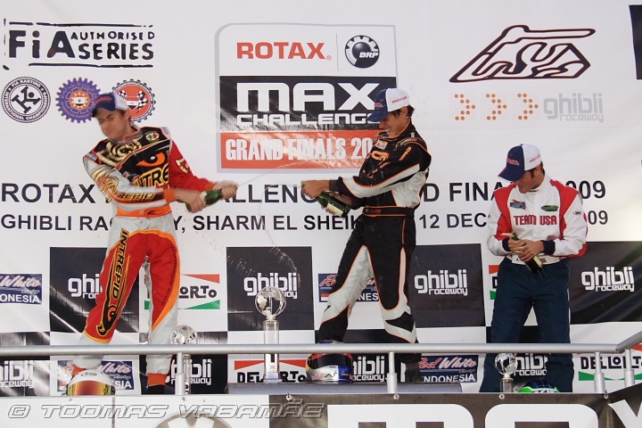 Cristiano Morgado (green), South African fans, prizegiving, Rotax Max Challenge World Finals 2009, Sharm el-Sheikh, Egypt, 12.12.2009 16:51.44